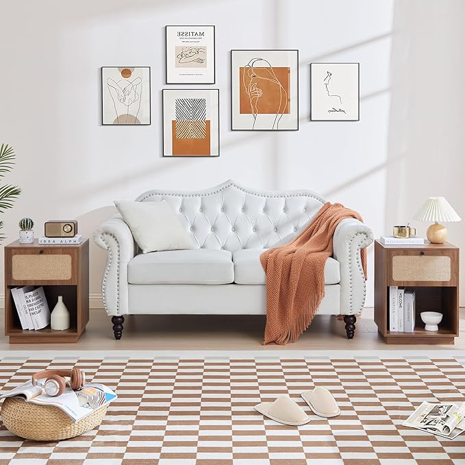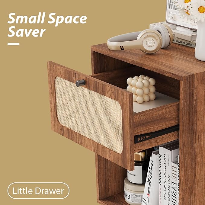 • Function-wise: The end table with a linen rattan decor drawer both as a shelf or storage space and as an added décor to the room, you can place small things like books, cups, and remote controls on top of it.You can also place two or more night stand with drawers side by side as a side table, refreshment table, Mini bar table, Toiletries storage etc.
