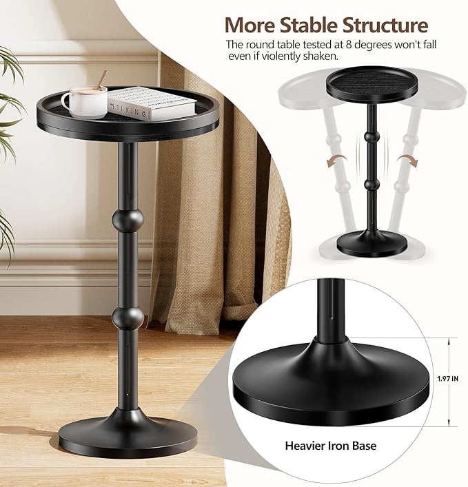 • STURDY & DURABLE STRUCTURE: The side table,tabletop crafted from high-density MDF with Anti-fall Edge Guard,Prevents accidental drops of coffee or drinks cups; table leg made of high-load-bearing metal tubing,Table Base features weighted iron blocks for added stability.The weighted iron base maintains rock-solid stability at 8° tilt – even under vigorous shaking.
