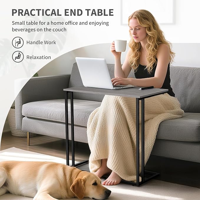 • Space-Saving Narrow Side Table Slides Effortlessly Under Sofas:Measuring just 24" long x 12" wide, this ultra-slim couch side table tucks neatly beneath furniture without crowding rooms. Its C-shaped base glides smoothly under sofas, positioning your essentials within arm’s reach—perfect for movie nights or remote work sessions