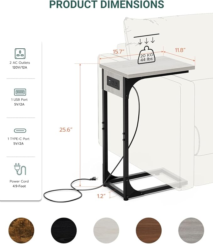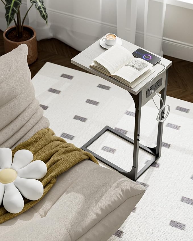 • 👍𝗠𝗨𝗟𝗧𝗜-𝗙𝗨𝗡𝗖𝗧𝗜𝗢𝗡𝗔𝗟 𝗠𝗢𝗗𝗘𝗥𝗡 𝗦𝗧𝗬𝗟𝗘 — With a minimalist yet modern look, this c shaped end table doubles as a sofa table, small coffee table, or laptop desk, while also serving as a tv tray for eating on couch. It now features a built-in charging station, keeping your devices powered without clutter. Blending into any living room, bedroom, or office décor, it offers versatility as a couch desk, bedside table, or under couch table