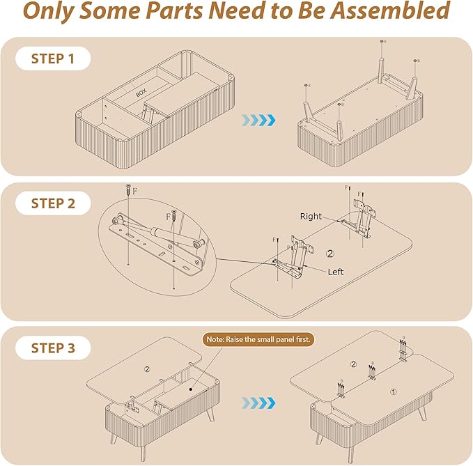 • Partial Assembly: Save yourself the headache of putting all pieces together. This multi-functional center table has the entire frame pre-installed. After you receive the package, you only need to install the 2 tabletops and legs. Unlike other coffee tables, you can complete the assembly faster and more accurately.