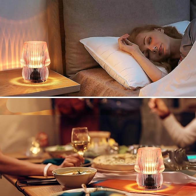• Small Cordless Lamp: This tiny glass lamp will adorn any space in your home, adding a touch of elegance to your living room, bedroom, dining room, kitchen, bathroom, patio, and backyard. It takes up less area and is easy to move, making it quite suitable for small spaces such as corner shelf, kitchen counter, bathroom vanity, console table, nightstand, and patio table