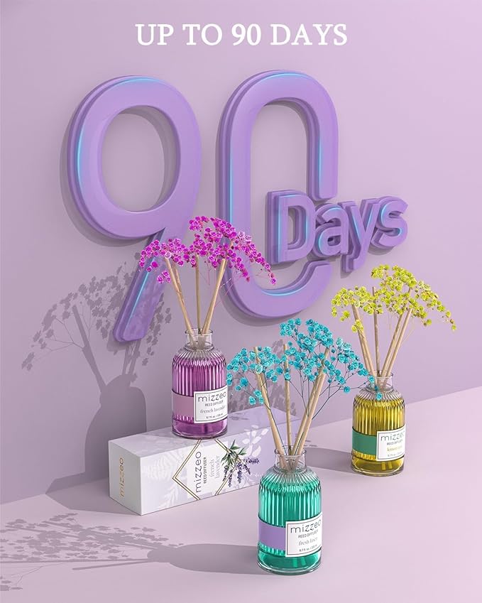 MIZZEO Reed Diffuser Set, French Lavender 6.76 fl oz Highly Scented Room Diffuser Home Fragrance Essential Oil Reed Flower Diffuser, House Bedroom Office Decor & Gifts