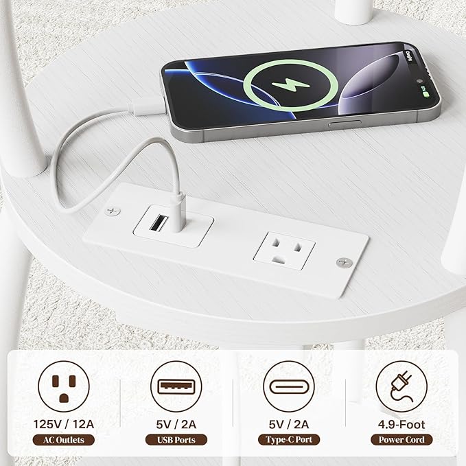 • Integrated Power Hub for Ultimate Convenience: This side table is your perfect modern companion, featuring a built-in charging station with 1 standard AC outlets and 2 USB ports (5V/2A). Place it by your bed or sofa to power your lamp, charge your phone/tablet, and keep all electronics within easy reach, eliminating the need to search for wall sockets and reducing cord clutter.