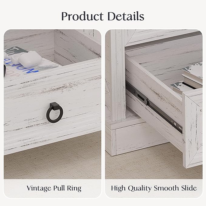 Coffee Table with Storage, 47.2 in Farmhouse Wooden Center Table with 4 Drawers for Living Room, Antique White Walnut, Easy Assembly Rectangle Home Office Tea Accent Table for Apartment