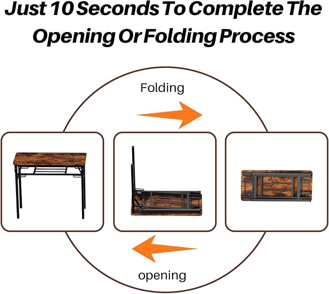 • Foldable & Space-Saving: Measuring 31.5“ L x 15.7” W x 30" H, it serves as a computer desk, bedroom desk, or study table, making it particularly suitable for apartments, dorm rooms, and home offices. Its foldable design and dual spring technology allow for effortless storage behind doors or under beds when not in use, while also facilitating outdoor portability