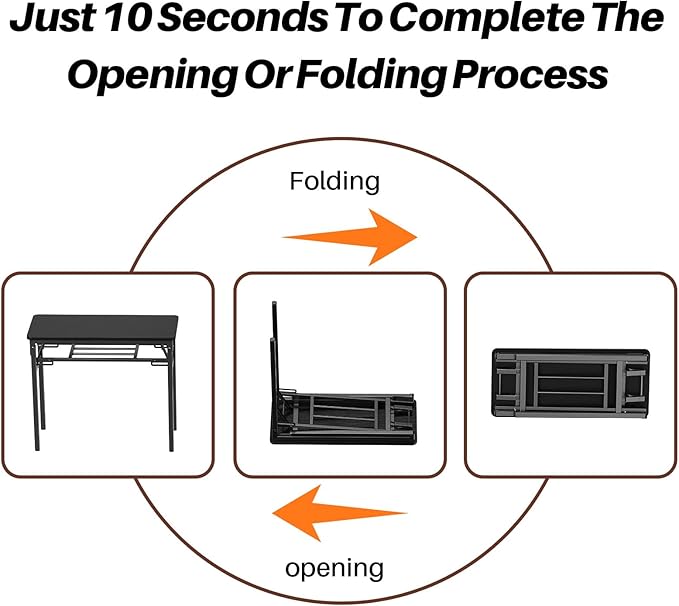 • Foldable & Space-Saving: Measuring 39.4“ L x 19.7” W x 30" H, it serves as a computer desk, bedroom desk, or study table, making it particularly suitable for apartments, dorm rooms, and home offices. Its foldable design and dual spring technology allow for effortless storage behind doors or under beds when not in use, while also facilitating outdoor portability