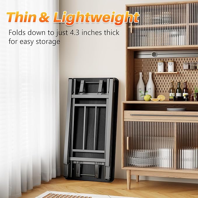 • Durable and Stable: Features an integrated frame tightly bonded to the tabletop, paired with metal legs and high-tension spring construction for exceptional load-bearing capacity up to 150 lbs. The tabletop is waterproof and scratch-resistant, ensuring durability and easy cleaning. Legs include adjustable glides to adapt to uneven flooring