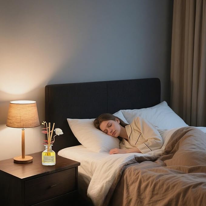 • 【Includes】- One aromatherapy glass bottle, a 4.4 fl oz essential oil blend, decorative flowers, and 5 reed sticks. Adjust the amount of fragrance released by adding or removing the sticks.