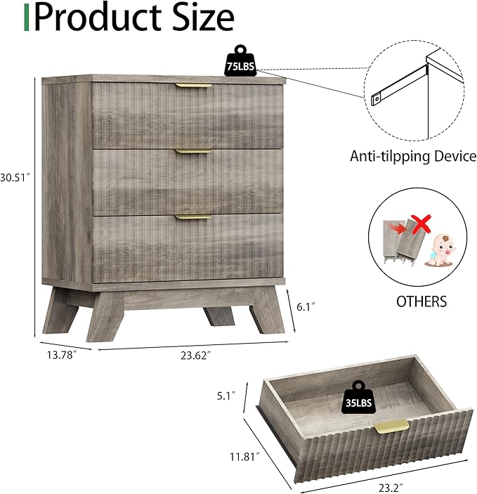 • 【Stability & Safety】The white/black/natural oak nightstand is equipped with an anti-tipping device, which can be fixed on the wall to prevent accidents. Each drawer contains a wide metal handle and built-in slide rail, easy to push and pull. Besides, the sturdy base provides this dresser with drawers a strong support