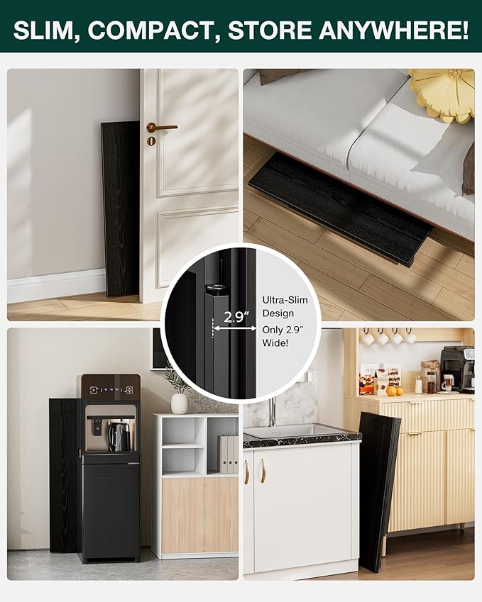 • 👍𝗙𝗢𝗟𝗗𝗦 𝗙𝗟𝗔𝗧 𝗪𝗜𝗧𝗛 𝗦𝗣𝗔𝗖𝗘-𝗦𝗔𝗩𝗜𝗡𝗚 𝗦𝗧𝗢𝗥𝗔𝗚𝗘 — With a folded thickness of only 2.9 inches, this desk fits easily under beds or behind doors. Lightweight and compact, it’s perfect for small-space living or temporary setups like trade shows and pop-up workstations