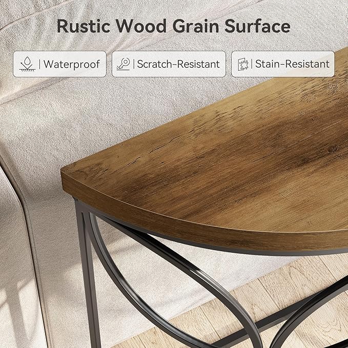 • Sturdy Construction: The sofa table’s reinforced metal frame and scratch-resistant MDF top ensure heavy-duty support. Adjustable feet keep it stable on uneven floors, while the anti-tip hardware enhances safety, ensuring long-lasting reliability