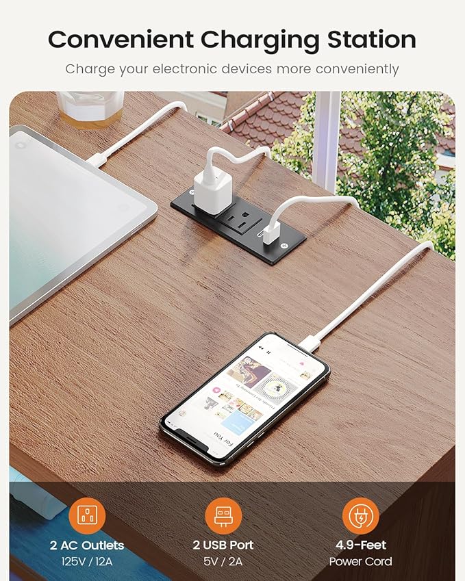 • 【Led Lights & Charging Station】The RGB LED lights with millions colors will make your bedroom more stylish and the charging station ( 2 USB Ports and 2 AC Outlets),allowing you to charge various electronic devices such as phone , earphone laptop, desk lamp and so on.
