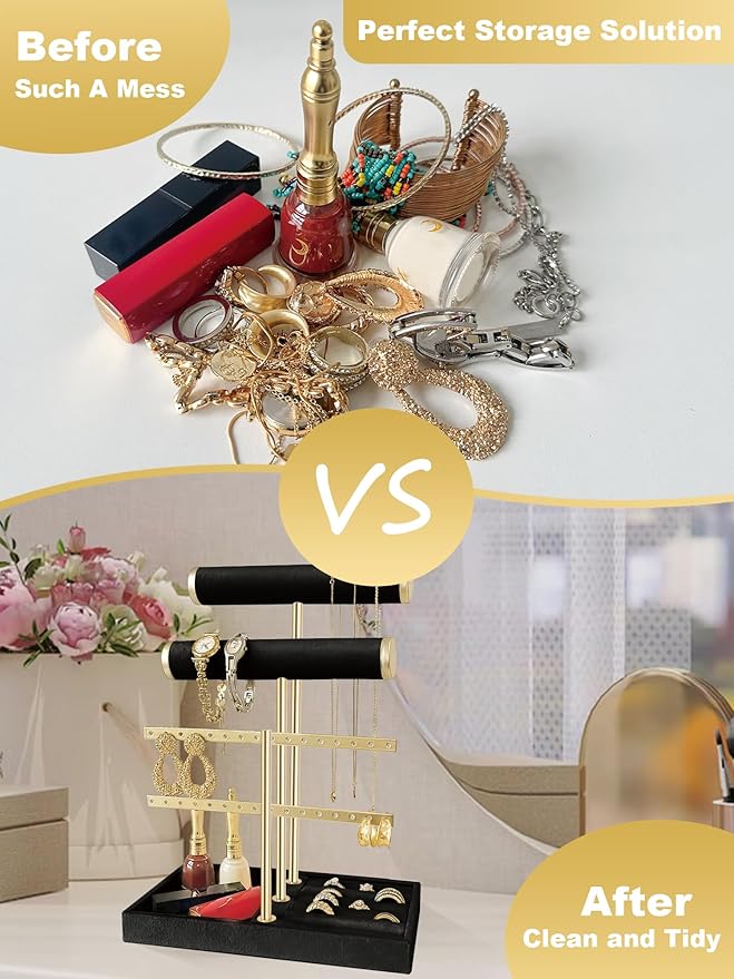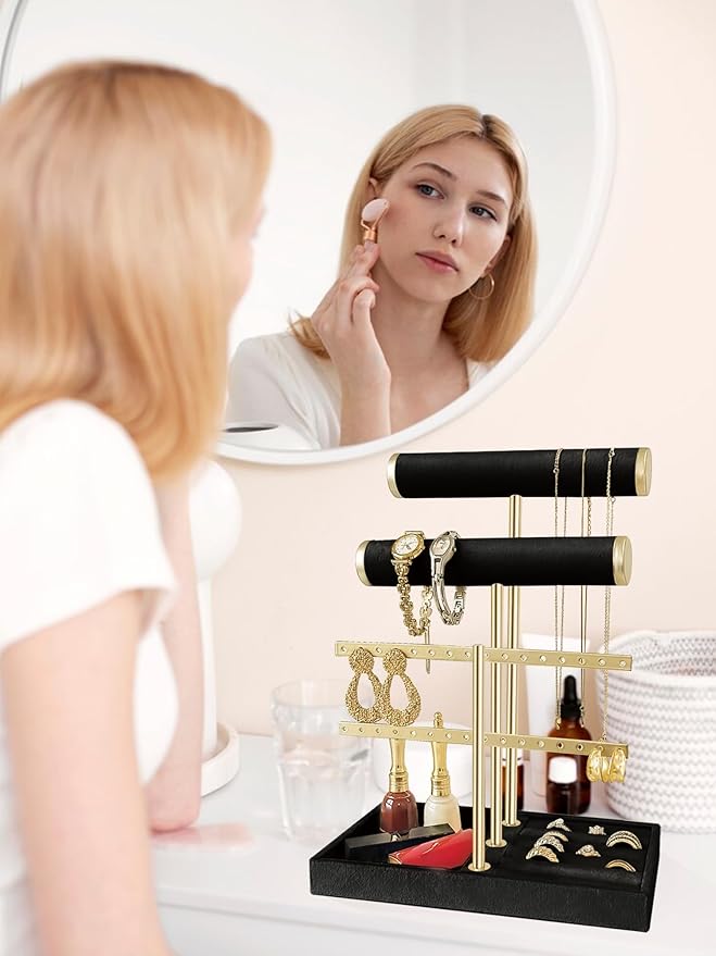 • 【Multi-Functional Jewelry Holder Organizer】Features dedicated T-bar necklace holders, earring slots, bracelet displays, and ring trays. No more tangled jewelry- just stunning Stockholm room decor!