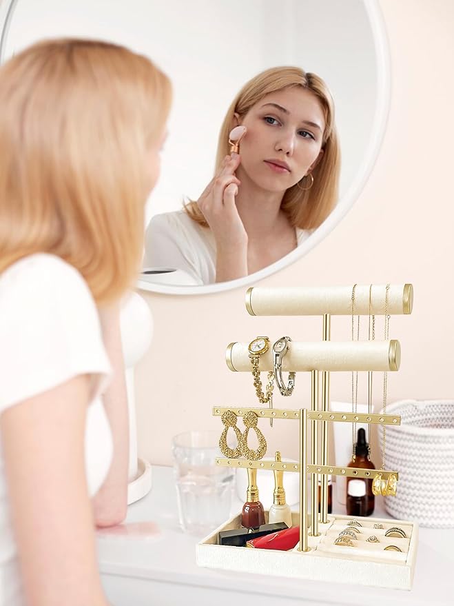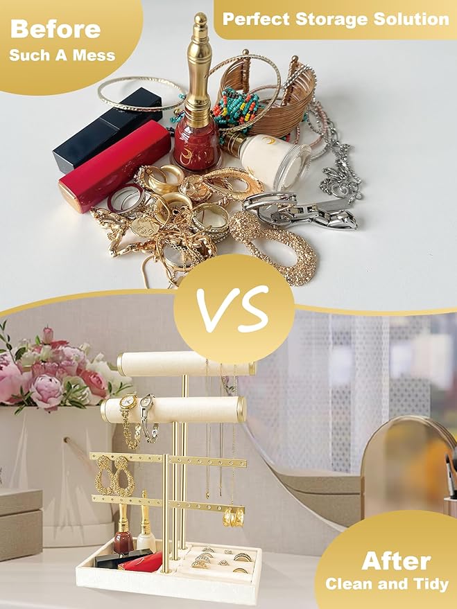 • 【Multi-Functional Jewelry Holder Organizer】Features dedicated T-bar necklace holders, earring slots, bracelet displays, and ring trays. No more tangled jewelry- just stunning Stockholm room decor!