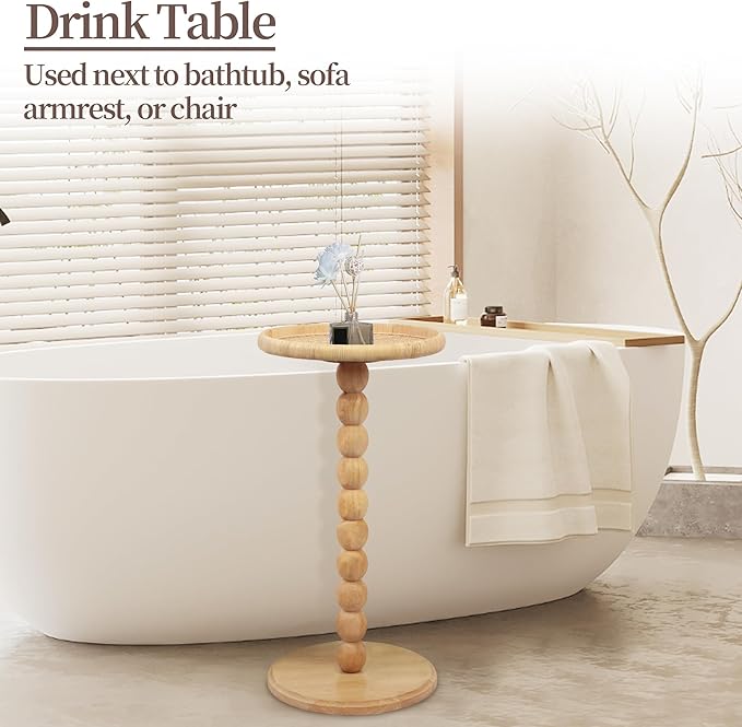 • 【Premium Quality & Stability】This small table stand crafted entirely from durable, natural solid wood for lasting quality.The 0.78" thickened and 11.8" enlarged circular base ensures exceptional stability,and prevents it from sliding or tilting.In addition, the small accent table comes with 4 anti slip pads that effectively reduce wear and improve stability