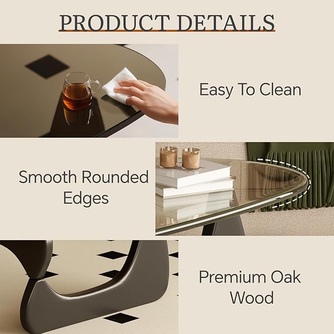 • 🌺【𝐄𝐚𝐬𝐲 𝐭𝐨 𝐂𝐥𝐞𝐚𝐧 & 𝐌𝐚𝐢𝐧𝐭𝐚𝐢𝐧】The center table's smooth glass surface resists stains and scratches, making it simple to wipe clean with a damp cloth. The solid wood base requires minimal upkeep—just occasional dusting to keep it looking new.