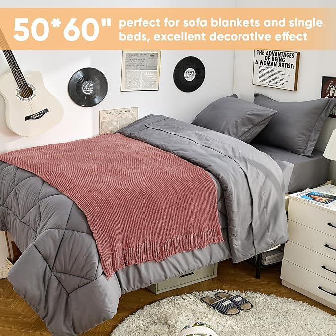 • 【FANTASTICAL COMBINATION】Inspired by minimalist neutral style,this farmhouse knitted throw blanket features a rich Coral Pink color and woven texture,complemented by elegant tassels. It adds cozy Christmas atmosphere to your home or living room.As and Christmas approach, drape this Boho throw blanket over your dining chairs or table,adding a stylish festive touch. After the celebrations,it’s the ideal cozy companion for resting on your bed,sofa, or couch, bringing ultimate comfort and warmth.