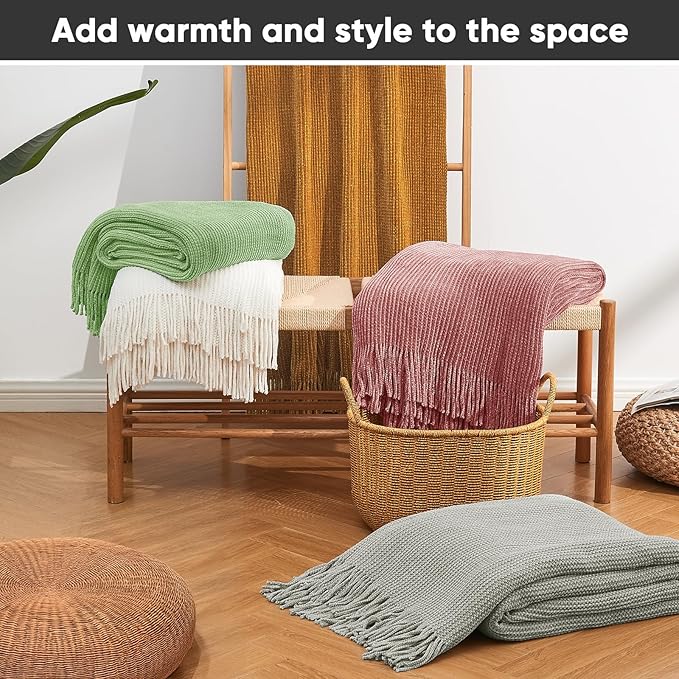 • 【UPGRADED CHENILLE YARN WITH 400GSM WEIGHT】After extensive testing, we’ve upgraded the thickness of this throw blanket to 400GSM, much thicker than the common 250GSM throws found on the market, providing superior warmth without sacrificing lightweight comfort. Made from 100% polyester and crafted with a new, Chunky chenille yarn, the weave is tighter and the texture is softer and fluffier. It feels like lambswool—skin-friendly, breathable, and a complete upgrade in comfort and quality.