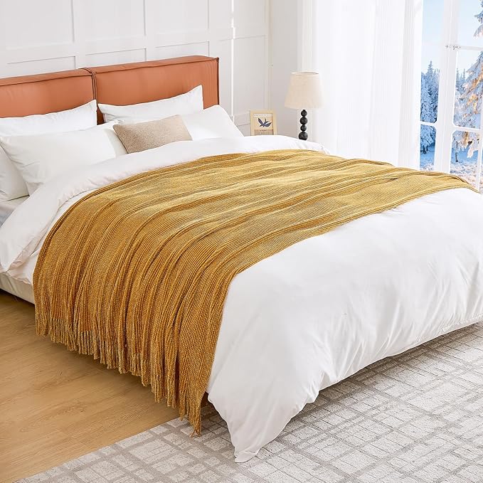 • 【FANTASTICAL COMBINATION】Inspired by minimalist neutral style, this farmhouse knitted throw blanket features a rich Brown color and woven texture,complemented by elegant tassels.It adds cozy fall winter atmosphere to your home or living room.As and Christmas approach,drape this Boho throw blanket over your dining chairs or table,adding a stylish festive touch. After the celebrations,it’s the ideal cozy companion for resting on your bed, sofa, or couch, bringing ultimate comfort and warmth.