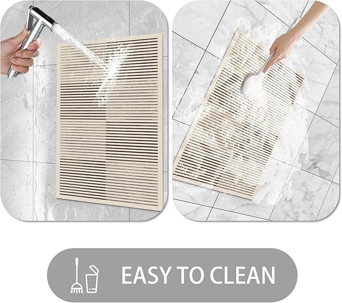 • 【Absorbent & Quick-Dry】Crafted with diatomaceous earth, this mat can absorb up to 1.9 gallons of water per square yard, making it perfect for high-moisture areas like bathrooms. Use it as an entrance mat to protect your floors from water damage, dirt, and debris, ensuring a clean and dry living space