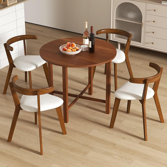 Tangkula 36" Foldable Round Dining Table, Kitchen Table w/Solid Rubber Wood Legs, Dual Drop Leaf Design, Farmhouse Circle Diner Table for 2-4 People, Dining Room, Living Room, Restaurant (Round)