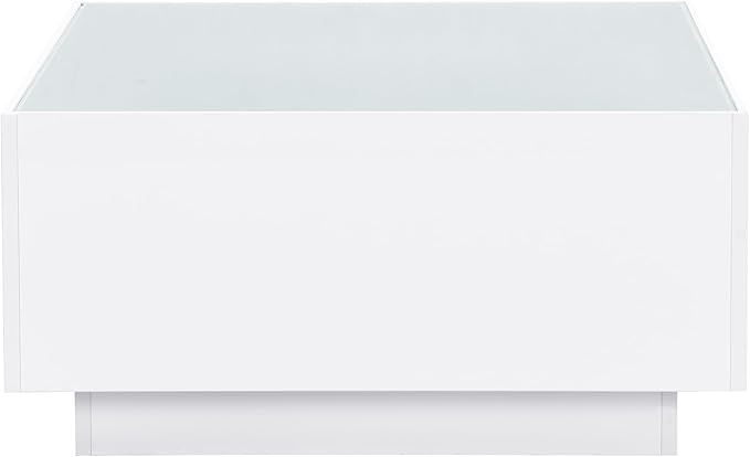 Modern White LED Coffee Table with 5mm Frosted Tempered Glass Top, High Gloss Finish, 16-Color App-Controlled Lights, Sturdy MDF Base, Easy Assembly, 27.56"x27.56"x13.78"