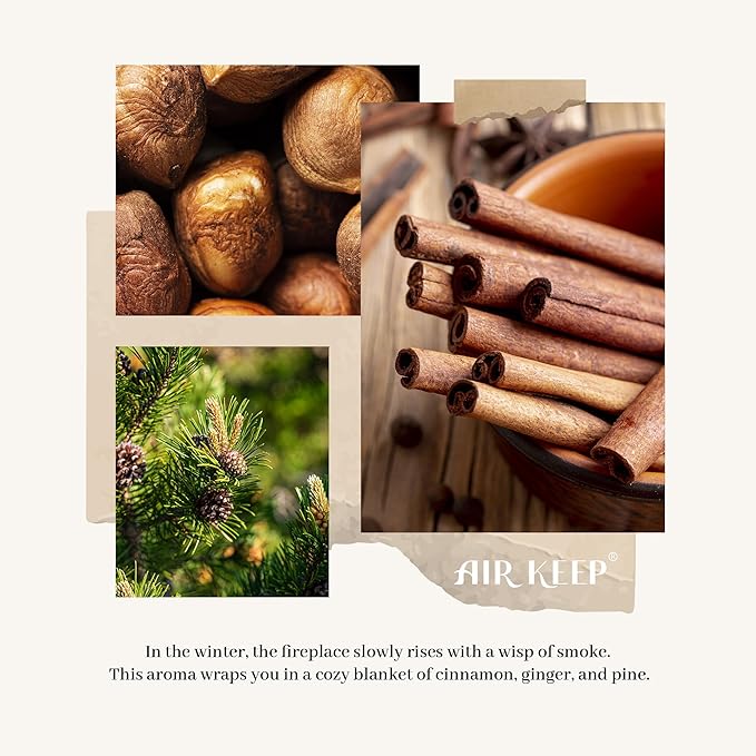 • Scent:In the winter, the fireplace slowly rises with a wisp of smoke. This aroma wraps you in a cozy blanket of cinnamon, ginger, and pine