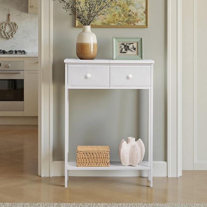 • Functional Table with Fabric Drawers and Bottom Shoe Storage Shelf: Provide you with the convenience of storing keys and other small items, displaying plants or ornaments, placing shoes on the bottom shelf