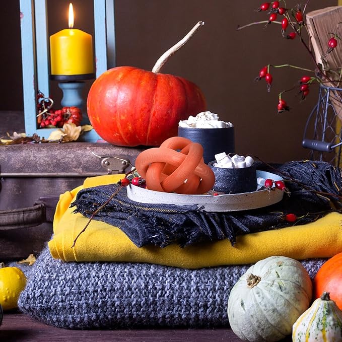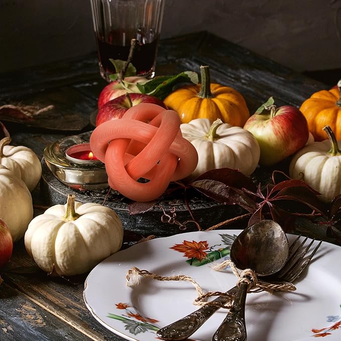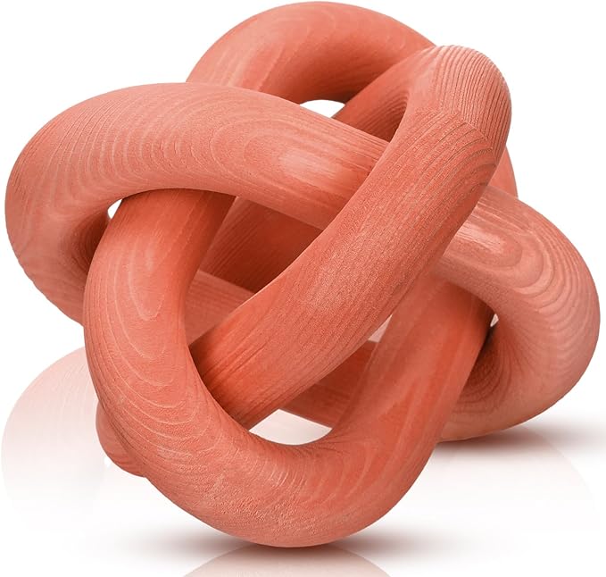 3 Link Wood Knot Decor - Hand Carved Coffee Table Decoration, Boho Chain Link Decor, Modern Shelf, Rustic Objects for Home Living Room Bedroom (Orange)