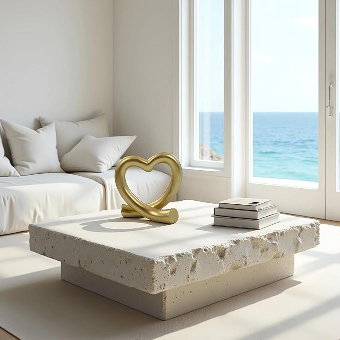 Gold Heart Love Sculpture – Luxury Romantic Gift for Anniversary, Wedding Table Decor, Golden Love Figurine for Elegant Interiors