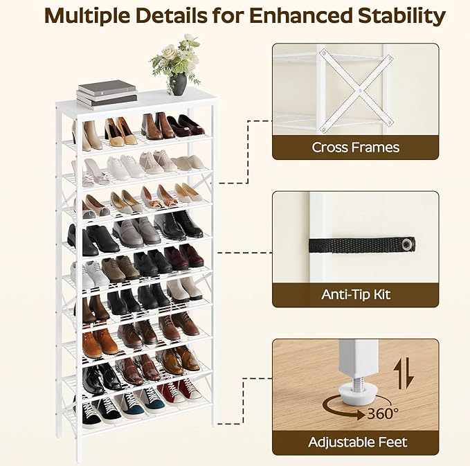 • Special Feature : 10-Tier Shoe Rack, Large Capacity Shoe Organizer