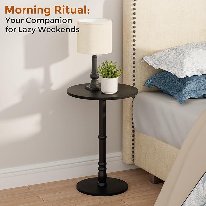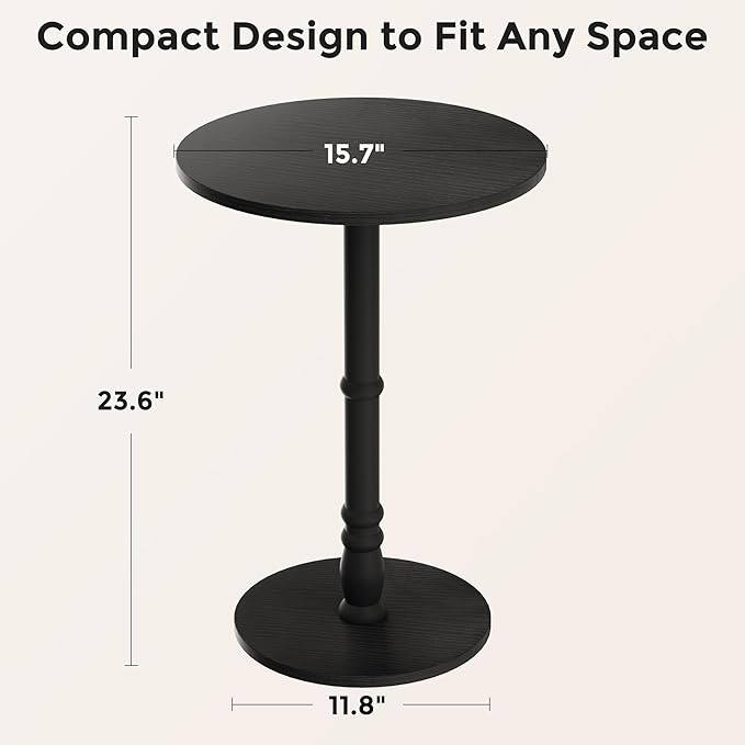 Round Side Table, Solid Wood Pillar, Large 15.7" Top, Small Accent Table for Living Room, Bedroom, Sofa, Entryway & Office, Easy Assembly, Black