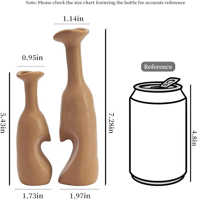 • Multifunctional Decorative Small Vase Set: Include 2 heart-shaped handcrafted vases in different ceramic vases, a large vase (1.97"L x 1.14"W x 7.28"H) and a short vase (1.73"L x 0.95"W x 5.43"H). It is decorative vases for living rooms, bedrooms. It can also be use as gifts for Weddings, Housewarmings.
