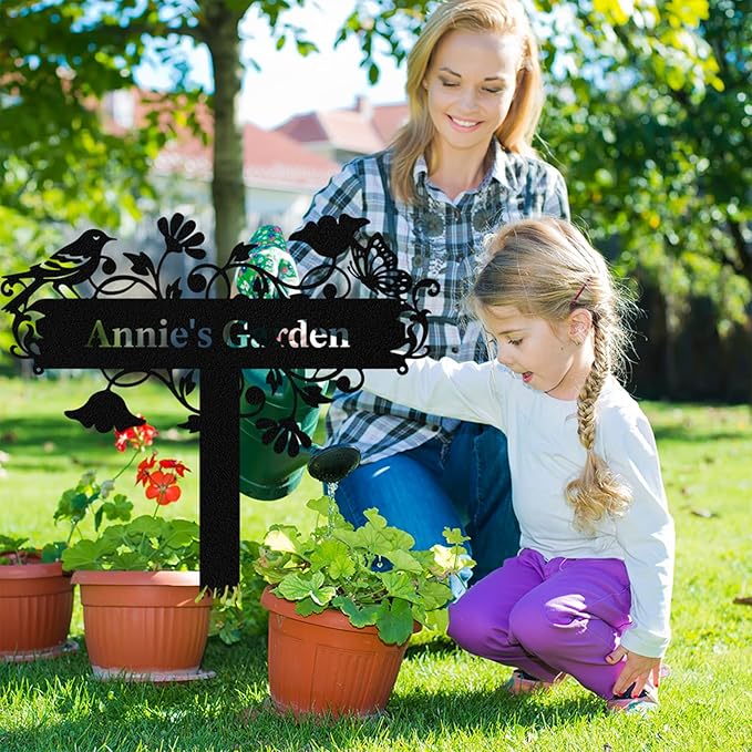 • CUSTOM Garden Signs -- Click "CUSTOMIZE NOW", choose the size and enter the name or text, custom your name on a charming personalized garden sign for your house garden, patio, lawn, yard, farm.
