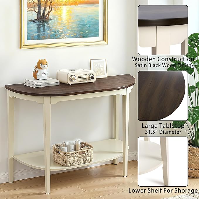 Half-Moon Console Table, 41" Long Sofa Table with Storage,2-Tier Brown Entryway Table for Living Room, Hallway, Entrance, Foyer