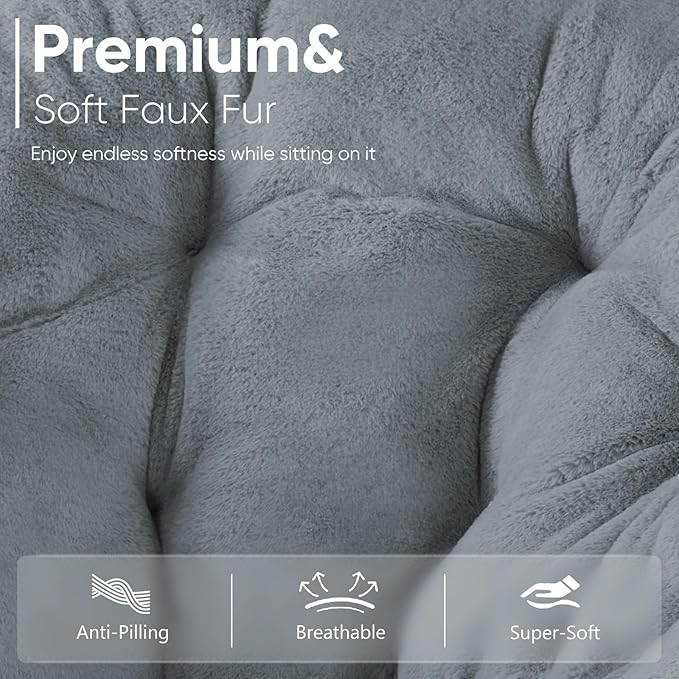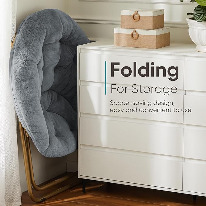 DUMOS Comfy Saucer Chairs Cozy Faux Fur Soft Lounge Cute Folding Bedroom Living Room Seat Flexible Reading Foldable Seating for Kids Adults Thick Padded Metal Frame Modern for Home Office Classic Gray
