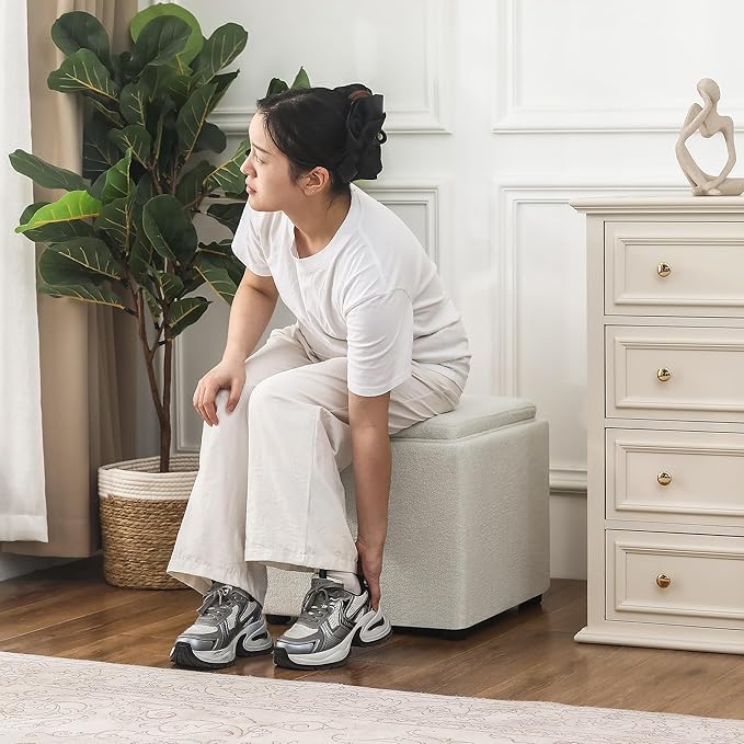 • Modern White Style Meets Hidden Storage – Wrapped in soft White fabric, this square ottoman with storage adds a chic touch to any space, from dorm room style to farmhouse charm. Compact yet roomy, it’s the ultimate small ottoman with storage to keep clutter out of sight.