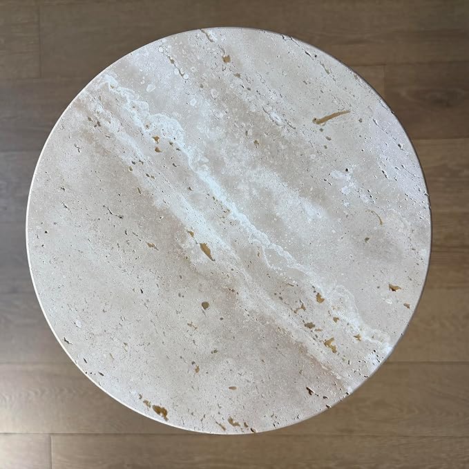 Premium Small Round Natural Marble Pedestal Side Table, End Table, Mini Drink Table with Upgraded Weighted Marble Base, for Livingroom, Bedroom, Bathroom, Balcony, Small Spaces (Beige Travertine)