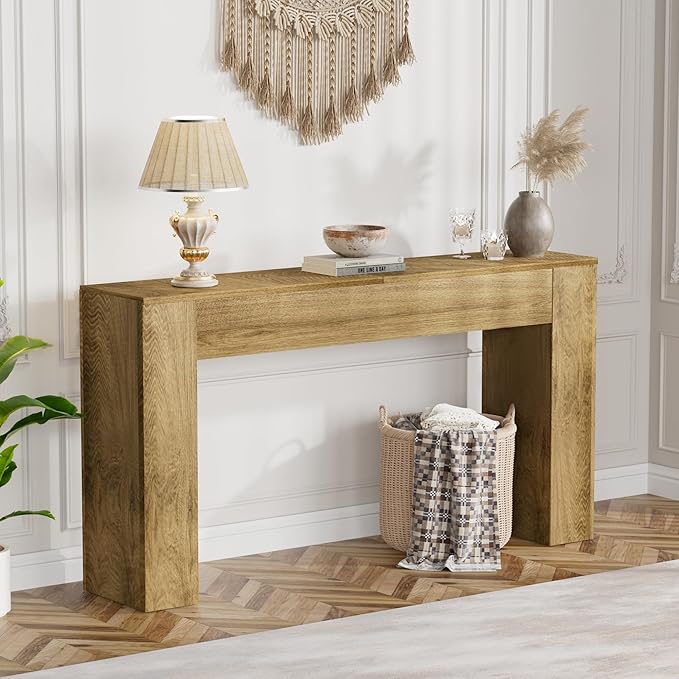 • 【Simply Feels Like Home】 This 63-inch console table blends rustic charm with practical elegance. Its extended length provides ample space for decor—lamps, framed memories, or seasonal accents—while its farmhouse-inspired style adds a welcoming, lived-in feel to any hallway or entryway. A simple piece that quietly transforms your space into a place that feels like home.