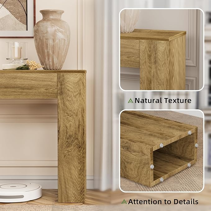 • 【Durable & Stable Construction】 Crafted from durable engineered wood, this console table offers more than just everyday strength—it brings peace of mind. The warm, wood-grain finish not only echoes the charm of real wood but also adds a rustic touch that makes your space feel grounded, welcoming, and truly lived-in.