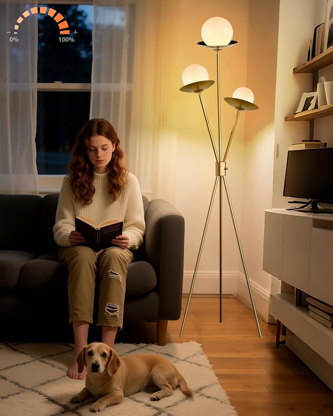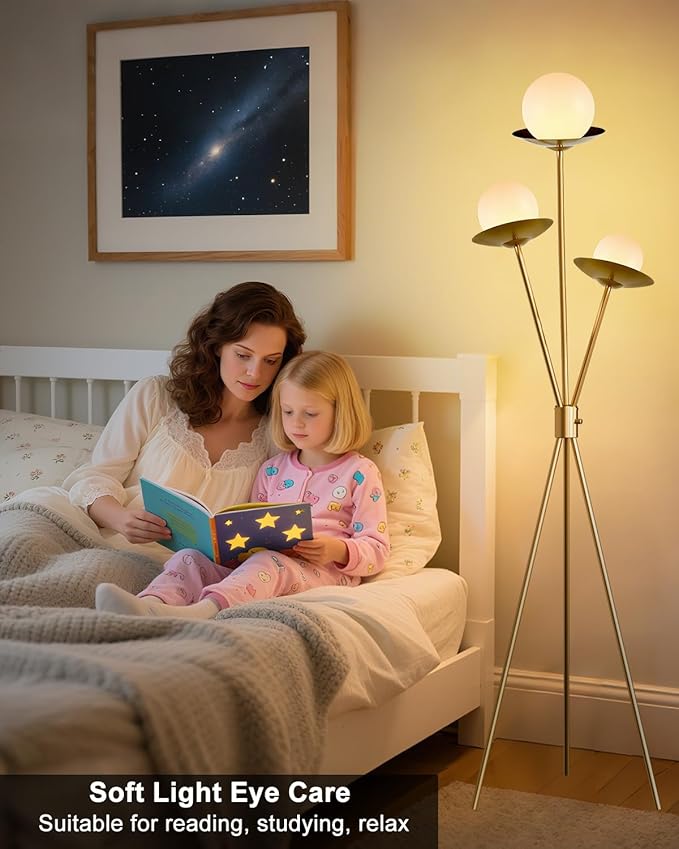 • Soft & Eye-Friendly Illumination✨ This standing lamp comes with 3PCS 3000K warm white G9 bulbs that do not overheat or flicker.The standing lamp diffuses warm and soft, not dazzling. The gentle light through its natural PC lamp shade, creating a cozy ambiance perfect for living rooms or bedrooms.