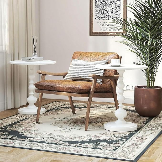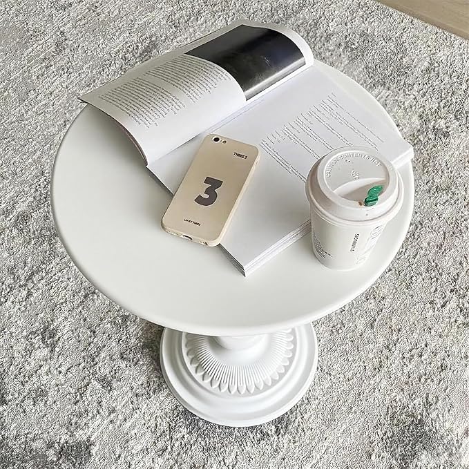 • 【Retro scientific design】The white side table, featuring a matte minimalist outline and classical column design, can be fashionably integrated into your home decoration. A round desktop can prevent potential injuries and is both aesthetically pleasing and safe.
