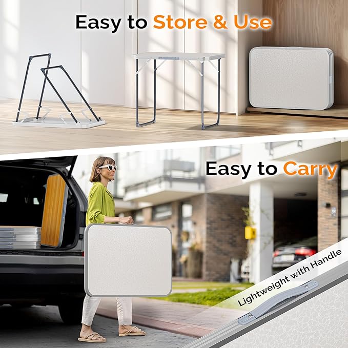 • MULTIPURPOSE TABLE: The bi-folding table is universal. Perfect for outdoor and indoor activities, camping, picnic, hiking, fishing, Dining, BBQ, party, travel, gathering, concert, sports, event.