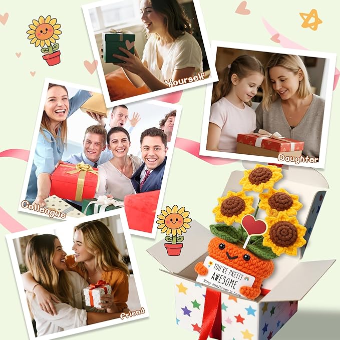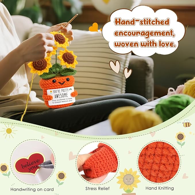 • Handmade Crochet Mini Sunflower Gift with Positive Affirmation – This adorable handmade crochet sunflower carries a heartfelt “You Are Awesome” message, making it a perfect emotional support gift, encouragement gift for women, or uplifting gift for friends, daughters, girlfriends, or sisters.