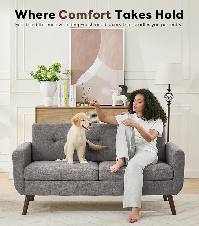 • TIMELESS APPEAL: Stylish tufted linen upholstery with a mid-century low-profile design brightens your whole home with modern craftsmanship and classic aesthetics. The small loveseat provides stylish and functional furniture for your apartment, adding more features to your home while decorating the room.