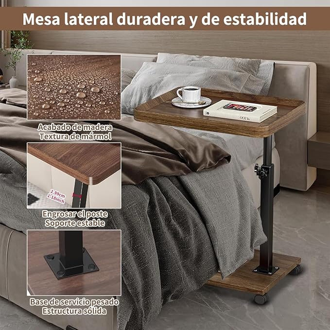 • 【Sturdy & Multi-Functional for Every Space】Constructed with a robust steel frame and solid wood board, this rolling table is sturdy enough for daily use. It's the ideal C table end table for holding drinks, meals, books, or as a bed tray in the living room, bedroom, or dorm.