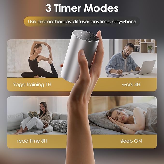 • Essential Oil Diffuser with 3 Spray Modes, Battery Operated, LED Timing Display,Aromatherapy Diffuser, 1/4/8-Hour Timer, 10ml Oil Bottle, and 3 Mist Settings for Home, Car, and Office
