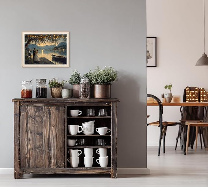 YUEYARIT Framed wall art, vintage wall decor, A Romantic Night decor, canvas printed pictures, suitable for gifts, cottagecore bedroom, bathroom, living room, and office artwork.16X24Inch
