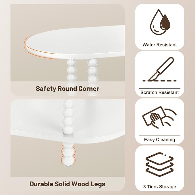 • High Quality & Easy To Clean: This wooden table shelf crafted from MDF desktop and exquisite solid wood cylindrical legs, it adds to the natural beauty of the whole table, which further improves the stability and durability of the couch end table to meet your long-term storage needs.When there is dust or stains, simply wipe gently with a damp towel to complete the cleaning